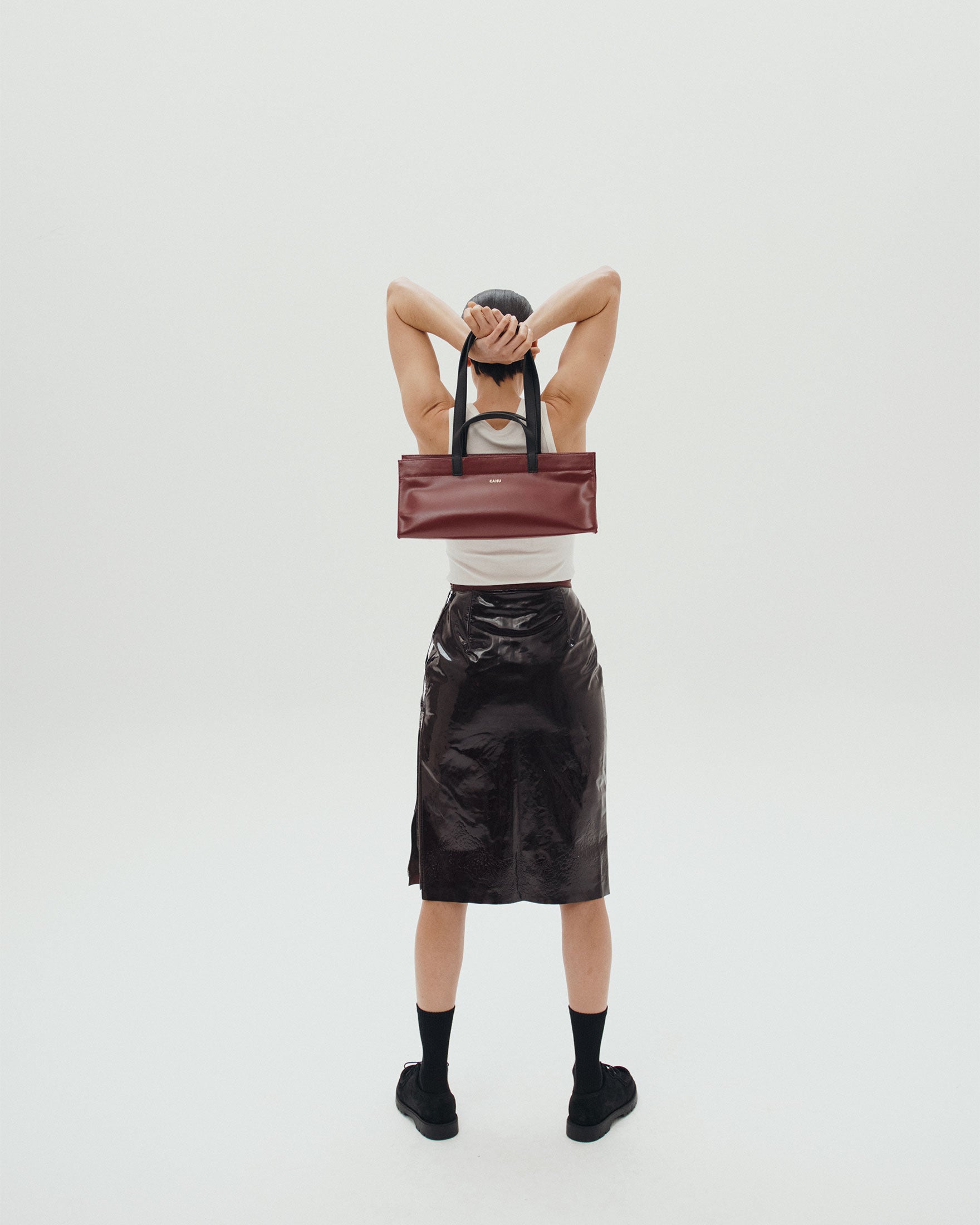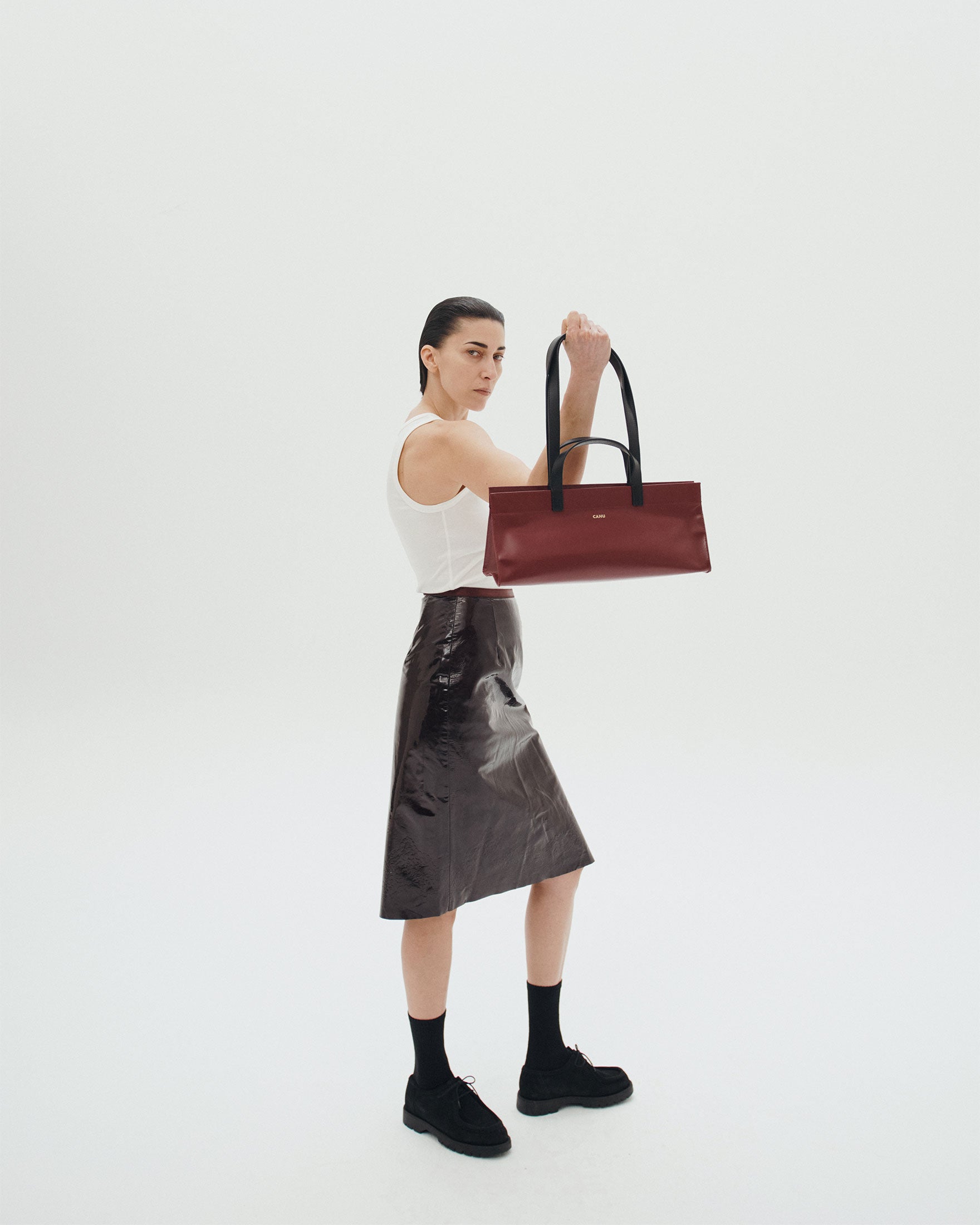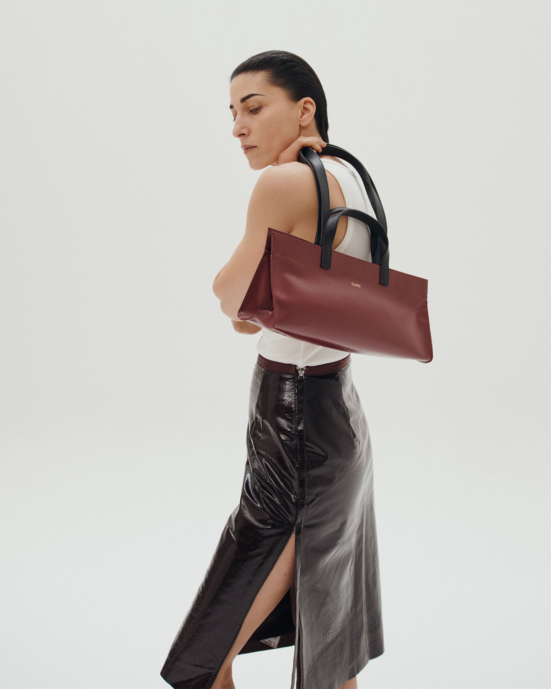 A nod to the 90s, the Mamie Baguette revisits the iconic bag of the era with minimalist elegance and a contemporary look. Its elongated silhouette and clean lines capture the essence of functional chic, emblematic of the CAHU house. A sophisticated and timeless design thought to enhance your evenings and special occasions.