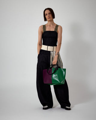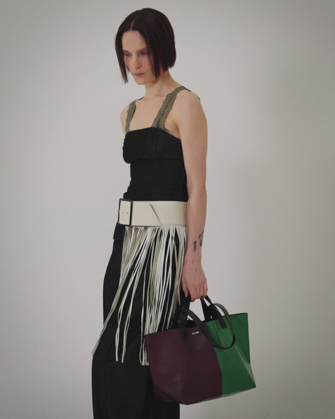 A contrast of materials, an obvious match. Monochrome or two-toned, the Bimatière is a story of textures as much as tones. The warmth of leather meets the cool modernity of PVC, giving rise to a hybrid, versatile, and singular silhouette.