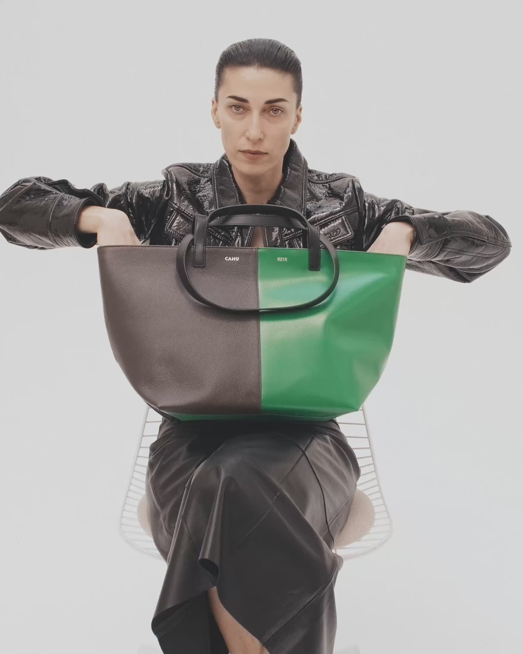 A contrast of materials, a natural choice. Monochrome or two-tone, Bimatière is a story of textures as much as tones. The warmth of leather interacts with the cool modernity of PVC to create a hybrid, versatile, and unique piece.