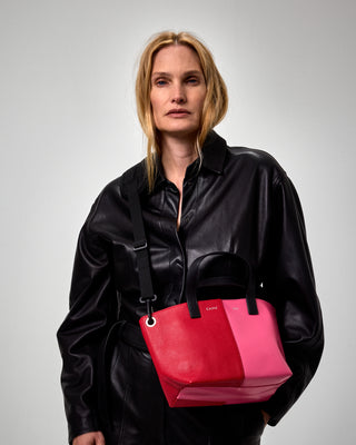 A contrast of materials, an obvious match. Monochrome or two-toned, the Bimatière is a story of textures as much as tones. The warmth of leather meets the cool modernity of PVC, giving rise to a hybrid, versatile, and singular silhouette.