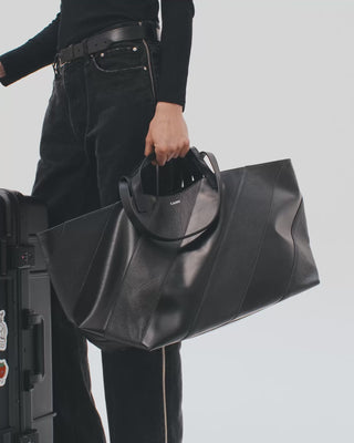 The Striped Pratique embodies the spirit of two-tone design in a mixed-material style, more graphic and assertive. Reworked in alternating monochrome stripes, the leather punctuates the modernity of the brand's signature PVC.