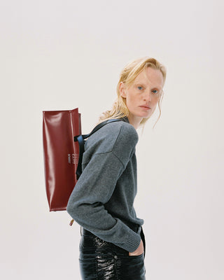 L’élément déclencheur ? Une campagne iconique de K-WAY, mettant en scène un top shot de silhouettes habillées en total look coloré, un véritable arc-en-ciel signature. Clémence y a vu un parallèle immédiat avec l’univers CAHU, où la couleur et la matière sont au cœur du design. C’était une évidence. Elle a alors contacté le showroom parisien de K-WAY, et l’idée s’est imposée d’elle-même : fusionner les matières iconiques des deux maisons, le PVC signature de CAHU et le nylon emblématique de K-WAY.