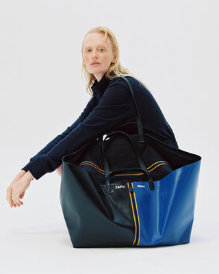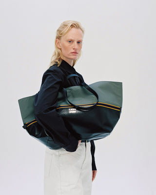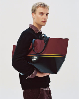 La collaboration s'articule autour d'un détail clé : le zip iconique de K-WAY, qui devient un élément structurant du design. Placé au centre du sac, il fusionne les deux matières tout en restant visible à l’intérieur et à l’extérieur, mettant en valeur le savoir-faire technique des deux marques. Cette approche offre une modularité inédite, permettant de jouer avec les couleurs et les formats.