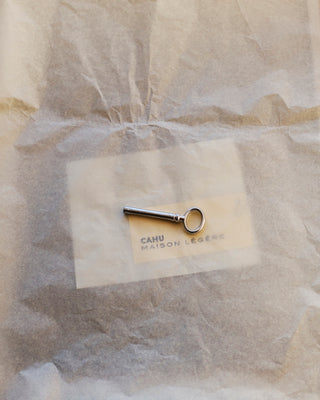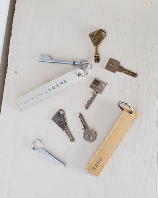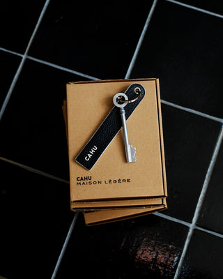 Pour ouvrir ce nouveau chapitre, Maison Légère s’associe à CAHU, une maison avec laquelle elle partage les mêmes points de départ : le beau, la fonctionnalité, et une esthétique minimale pensée pour durer. De cette rencontre naissent deux objets signatures : une étiquette à bagage et un porte-clés, réalisés à partir des chutes de cuir et de toile PVC issues des sacs CAHU. Une approche durable et sensible, qui donne une seconde vie aux matières et les transforme en compagnons de voyage du quotidien.