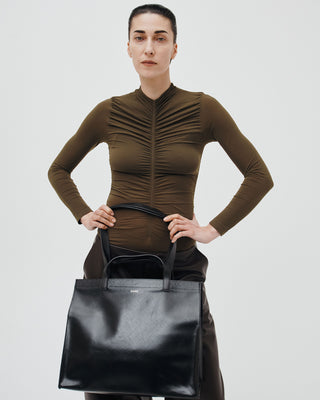 Fusion parfaite entre un Pratique et un Mamie, nous avons ajouté les anses du Pratique pour une robustesse à toute épreuve. Inspiré par un sac de marché des années 60, le Mamie est la version féminine du pratique