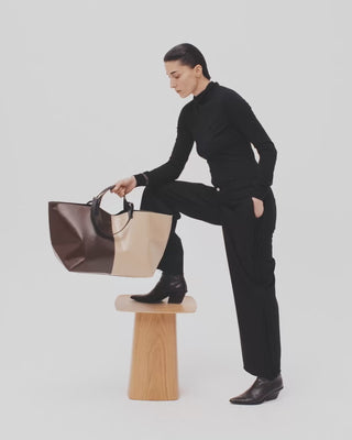 Deux couleurs, une intention. Le Bigoût, c’est l’audace d’un duo. Deux toiles PVC, deux couleurs, un sac. PVC sur PVC, c’est la matière signature de la maison, celle qui résiste à tout : à l’eau, au temps, aux caprices. Un sac en double teinte, à porter avec un double regard : le vôtre.