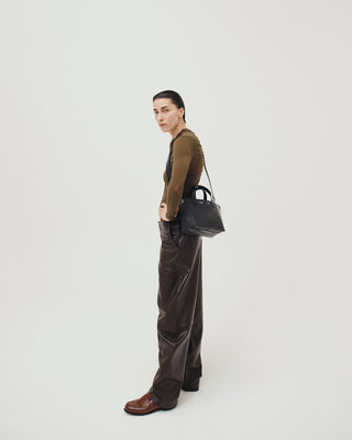 Un contraste de matières, une évidence. Monochrome ou bicolore, le Bimatière est une histoire de textures autant que de tons. La chaleur du cuir dialogue avec la froide modernité du PVC pour donner naissance à un volume hybride, versatile et singulier.