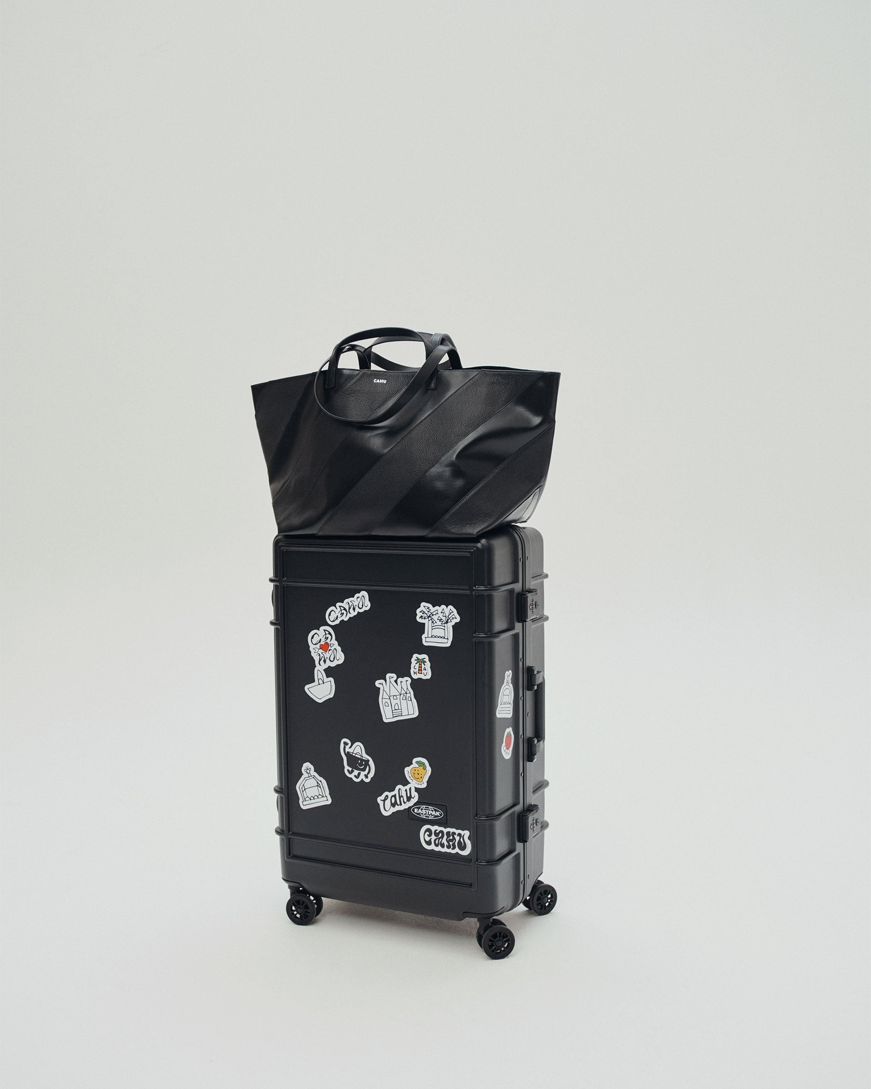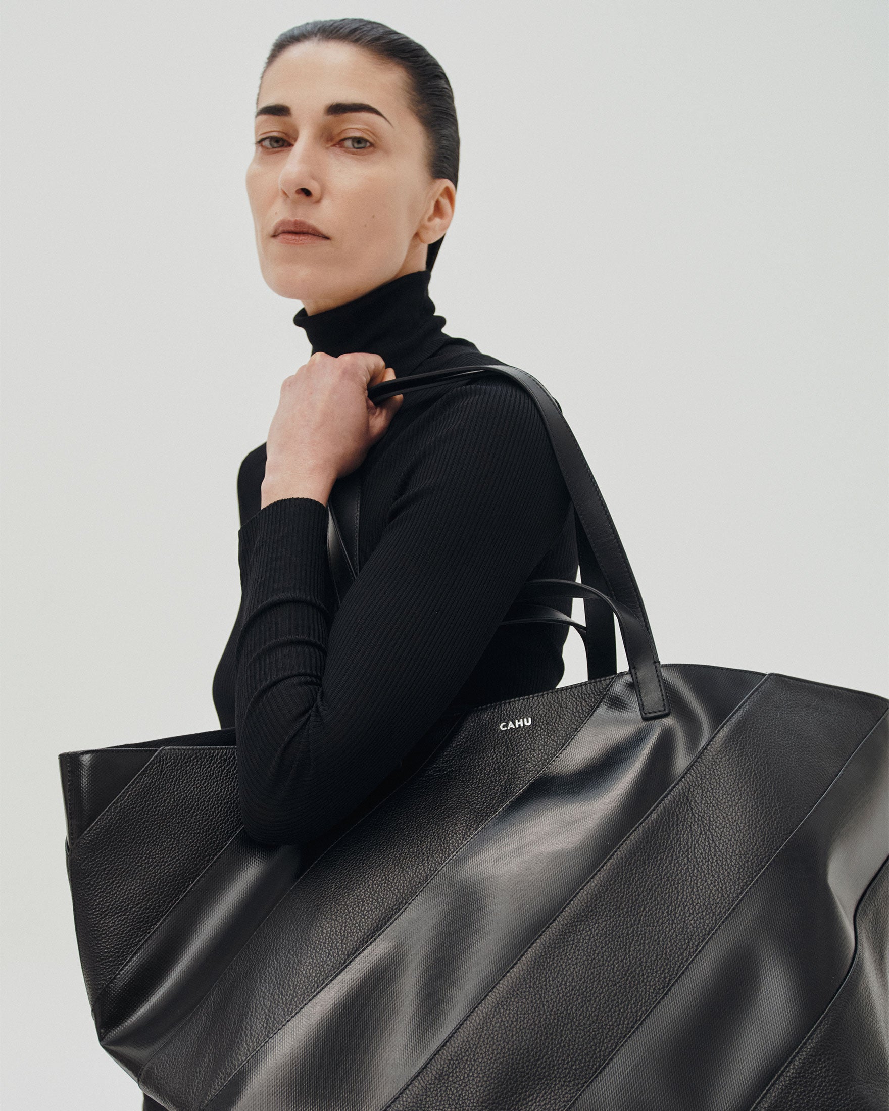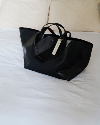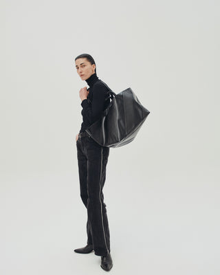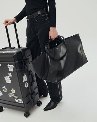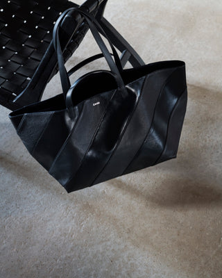 Le Pratique Striped incarne l’esprit du bi-matière dans une écriture mixte, plus graphique et plus affirmée. Retravaillé en bandes alternées monochromes, le cuir ponctue la modernité du PVC signature de la marque.